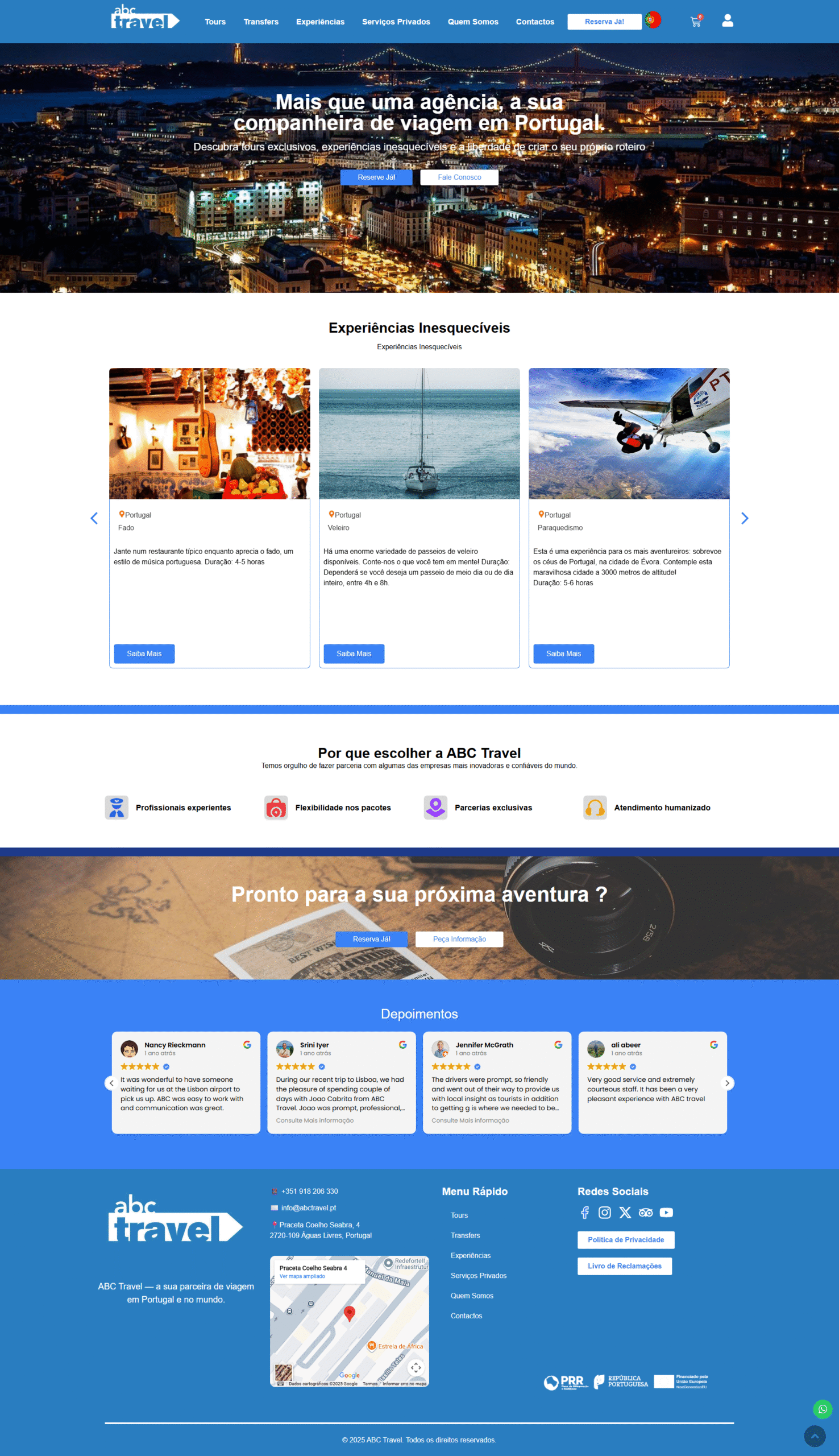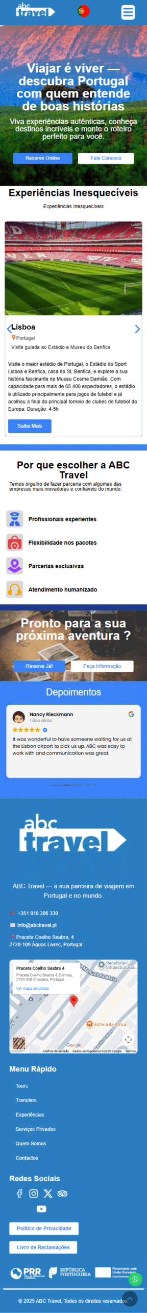 O resultado é um site rápido, responsivo e 100% gerenciável pelo cliente, permitindo que a ABC Travel atualize seus tours, preços e informações sem depender de suporte técnico.